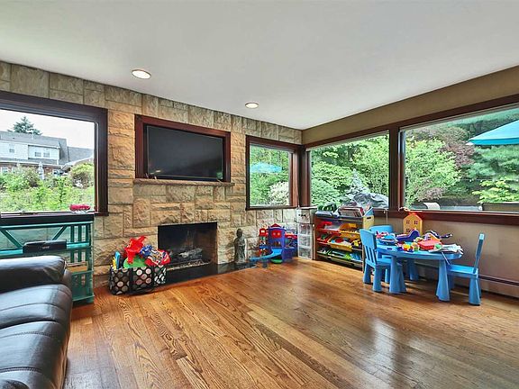 PRICED TO SELL Please Bring All Offers! Contemporary center hall colonial, resort style home on a quiet half acre in desirable neighborhood nestled in between areas top rated schools. Upon entering you are greeted with soaring ceilings and abundant light flooding the formal living room. The inviting main floor also features a custom gourmet eat in kitchen with granite counter tops & Stainless steel appliances, a formal dining room & library. The kitchen/family room has a gas fireplace set in beautiful stonework and is framed with large windows that look out onto the spacious deck. mature landscape and 20 x 40 in ground pool with state of the art, speed heater. A custom child security fence is included in the sale. Luxurious master bedroom features a newly renovated en suite with soaking tub and mounted TV. Three bedrooms, one with spiral staircase to a bonus loft area with custom closets and a full bathroom complete the level. The first level/basement is fully finished with a full bathroom, office/bonus room and 3 cedar closets. Great for entertaining! Prime location! Minutes away from Garden State Parkway, NJ transit Pascack Valley Line train station and border of Rockland County NY.