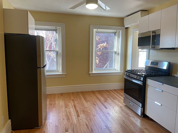 Completely updated apartment in a historic brownstone with large living and dining spaces. New hardwood floors and bathroom with tiled walk-in shower. Modern kitchen includes new fridge, stove and microwave. Free laundry in building. New heating system and air conditioning. Plenty of storage space. Covered, locked bike storage and on street parking. Walk to Roxbury Crossing T station (orange line) or Nubian Square (silver line) as well as the Southwest Corridor bike path. Covered, locked bike storage and on street parking. Perfect for professionals seeking a quiet place in a convenient neighborhood. Located on beautiful Fort Hill near John Eliot Square. Responsible landlord. $2200/month. Wifi included. Available now. No fees. Prefer one year lease. Owner pays for water and wifi. Renter pays gas and electricity.