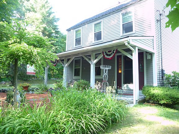 Beautiful grounds! Great opportunity for well maintained home with lovely 2 bedroom in-law set up. Immaculate throughout, with open kitchen to oversize family room offers wood stove, cathedral ceilings, skylights and exposed beams with wonderful natural light. Large, sunny deck and patio area overlooking spacious back yard! First floor master with newly remodeled bath along with 2 spacious bedrooms and 1 full bath on second level. IN LAW ACCOMODATIONS: Separate entrance to beautiful kitchen, large living room, full bath, laundry and pretty farmers porch. Second floor offers charming turned staircase and master bedroom with on suite bath, bedroom and 3rd floor walk-up with tons of storage. Endless uses for this property as guest suite, rental income or in-law apartment. Easy care vinyl siding and shingled roof. 2 Car Detached Garage. All of this located on sunny lot with private setting and beautiful grounds. 2 Separate heating systems.