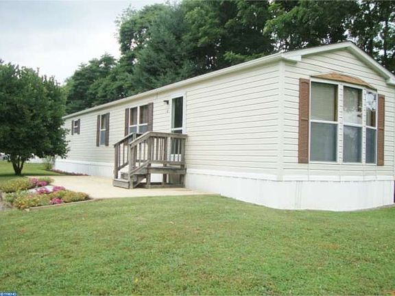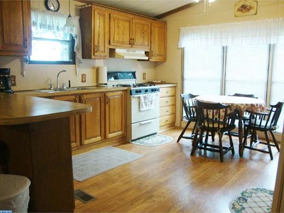 Super clean, well maintained home on a quiet cul-de-sac road in Nottingham Manor. Large rear yard includes a shed, has mature trees and backs to farm land. Large eat in kitchen with lots of cabinets. Roof is 4 years new, Hot water heater 2 years, Heater 1 year. 2 Car driveway parking. Lot rent includes trash and common area maintenance. Washer/Dryer, entertainment center, riding lawn mower, weed eater and shed included in the sale.