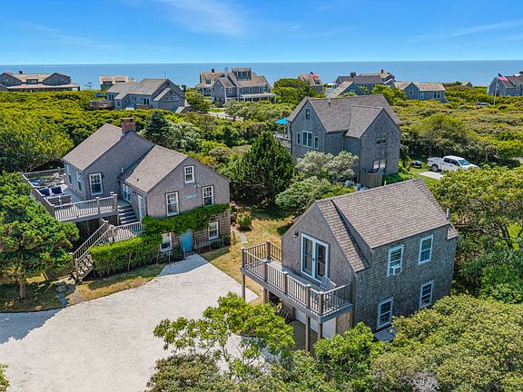 A tranquil retreat awaits you. This multi-level, light and bright home features views of the Atlantic Ocean and Sankaty Lighthouse. Nestled just off Old Tom Nevers Road, the white shell driveway at the end of Hollister Road takes you to the Main House as well as the garage. Enter through the kitchen and dining area, walk a few stairs to the spacious living room with its cathedral ceiling, abundant windows to showcase the ocean views, a fireplace, and access to the wrap-around deck. Bedrooms are situated on the lower levels. An oversized garage has a large studio dwelling on the second floor with a large deck. Beach access is 0.3 miles from the home. Potential for pool needs verification. This turn-key property is a gem.
