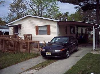 Beautiful 55+ community of "Mullica Woods". Large 2 bedroom 2 bath has 2 walk in closets, a fantastic Master Bath with duel sinks, garden tub and large stall shower, nice kitchen with an eat in area, formal dining room and living room. Deck with handicap ramps, carport and outside storage shed. Lot rent includes water, sewer, taxes, trash and snow removal.