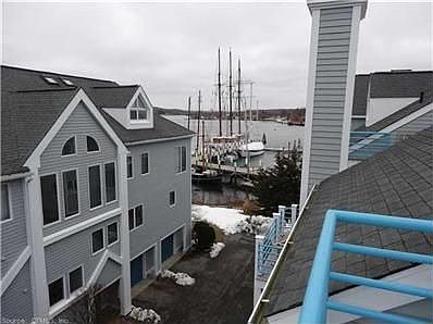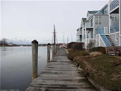 Beautifully updated and redec end unit condo/waterfrt complex.Views/river and historic ships at Mystic Seaport.New kt/ granite cnt isl/seating,gas range, opens to DR/china cabs & LR/fp,deck.Wd flrs.2BR,2.5bth,upper FR/ofc,deck.Garage.Can be sold furnished