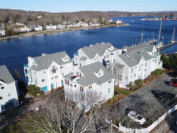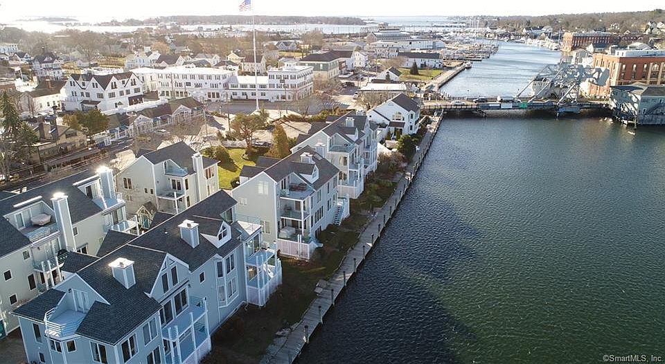 Penthouse Condo with spectacular city and water views available in Historic Downtown Mystic! 3 BR end unit with 2 full baths and water views of the Mystic River. Open floor plan on main level with plenty of windows allow for natural light creating an open and bright space with added warmth of the gas fireplace in living room expanding to the dining area. Viking kitchen appliances for the serious cook lend to gourmet meals. Master bedroom has full bath with Jack and Jill sinks and second bedroom all on main floor. An additional large bedroom on upper penthouse level with access to 2 balconies and beautiful water views! Attractive hardwoods, Thermopane windows, and attached garage. Dock may be available to rent. Stroll to the many local shops and restaurants all in walking distance. Close to major employers Electric Boat, Pfizer, Hospital, and 2 Casinos.