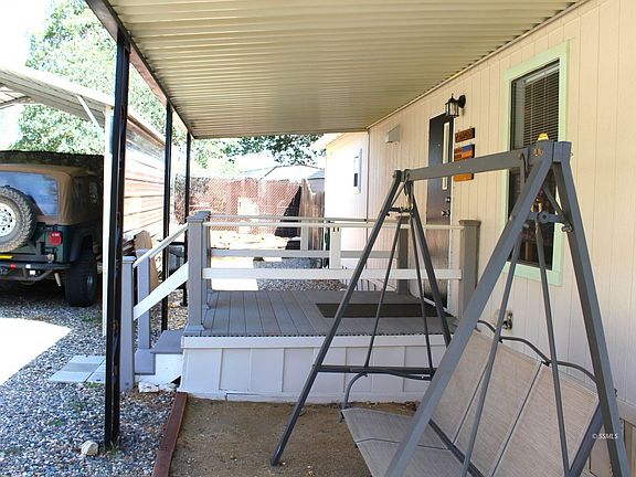 Manufactured Home 2bd, 2 ba 672 sq. ft. with appox. 304 sq. ft. additional room, move in ready with updated flooring, open kitchen with appliances including washer/ dryer. Separate dinning area and step down living area which was not permitted but has been counted as living space. Property is well maintained with an updated concrete back patio and tiered landscaping. Many updates have been done inside and out including hardscape in front for parking. Room to park your RV, boat, toys including a double bay metal carport and two storage sheds. There's nothing quite like the smell of the mountain air, listening to the birds and enjoying the beautiful sunsets from the back yard of this property! Seller is giving $15,000. credit at closing for leach field repairs. Septic has been pumped but leach field needs repaired in order to certify.