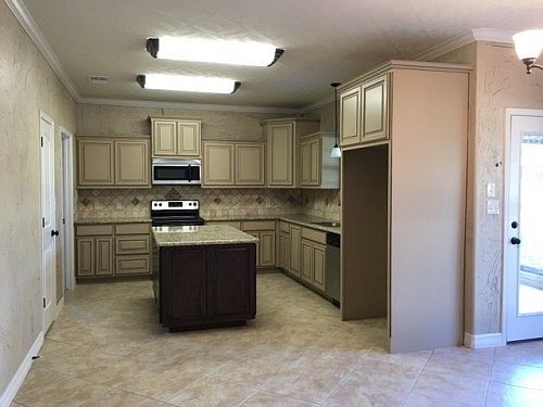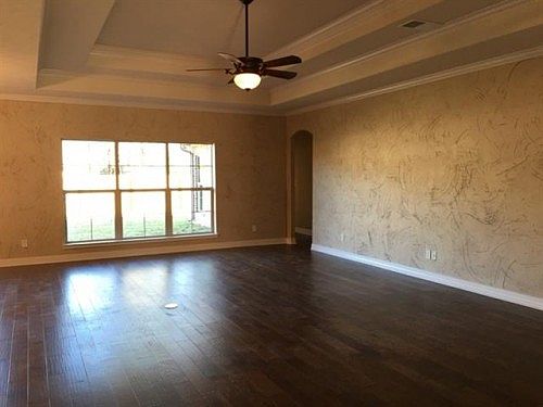 Beautiful home w/Open concept Living Space, and a Split Bedroom Plan. Kitchen has tons of features including tile floors, granite counter tops, granite island work center, and tons of cabinetry space. Tray ceilings in Living Room and Master Bedroom. Inside Utility Room w/ granite counter-top station and additional cabinetry space. Two bedrooms have ample size closets, and high ceilings which makes for a great open, airy feel. Master Bedroom features high ceilings as well along with an attached Nook great for whatever fits best for you. Master Bath features stand up shower, double sinks, nice-sized tub and two separate walk-in closets that both feature awesome built-ins. Custom painted and glazed wall treatment in Living/Dining Area adds high-end designer feel. Back covered patio w/ fan right off Living Area extra slab has been added for more space.Privacy fenced-in back yard. Freshly added landscaping in Front and Back Yard. Storage Building A/C.