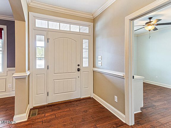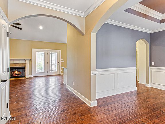 This beautiful home features an open floor plan with spacious living areas, perfect for entertaining. The main level includes an office with custom built-in bookcases and desk, a formal dining room with a tray ceiling, and a large living room. The kitchen is a chef's dream, offering custom cabinets, granite countertops, a tile backsplash, stainless steel cooktop, wall oven/microwave, refrigerator, an island, pantry, and a breakfast nook. A convenient powder room is also on the main floor. The generous primary suite is a retreat, boasting double sinks, a walk-in tile shower with dual shower heads, a garden tub, and a walk-in closet. The second and third bedrooms are also on the main level and share a Jack-and-Jill bathroom, while the fourth bedroom is located upstairs, complete with a full bathroom. Additionally, the home features a large bonus room or recreational space above the garage, ideal for a home theater, playroom, or office. The home comes with a washer and dryer, and the laundry room includes a utility sink. For added convenience, there is a walk-in storage room off the garage and laundry room, as well as attic storage space upstairs. Outside, enjoy a covered front porch, a screened-in back porch, and a grilling deck. The oversized two-car garage offers ample space, and the property sits on a quiet cul-de-sac lot. Located in the Sandhills Farm Life School District, this home is just a half-mile from the Greenway Trail, perfect for walking, running, and biking. It's also just 2 miles from the grocery store, 3 miles from the elementary school, community college, and airport, and only 35 minutes from Ft. Bragg. The monthly rent includes bi-monthly yard maintenance, and pets are negotiable with a $250 nonrefundable pet deposit per pet. The home is available for immediate occupancy. Please note that the gas logs in the fireplace are included, but there is no gas tank on the property.