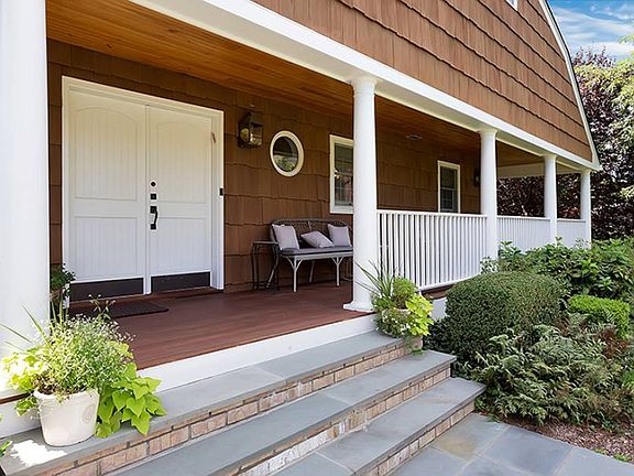 Welcome Home! This pristine 5 bedroom, 3.5 bathroom house has a classic elegance, and is located on 1/2 acre of flat property on a cul-de-sac backing Crawford Park. Cook in your dream kitchen complete with a 6-burner gas range and griddle, then cozy up and enjoy your meal next to the wood-burning fireplace in the adjoining den. Prefer the outdoors? Step outside your kitchen on to your mahogany wrap around porch and enjoy a moonlit night. Retire to your oversized master bedroom suite complete with french doors to a private balcony overlooking the private backyard. Additional features include: living room with a wood-burning fireplace, family room with a wood-burning stove and sliders to a slate patio, formal dining room with french doors to the kitchen and den, hardwood floors, updated baths, home office with custom built-ins, two car garage, surround sound, crown moldings and so much more!!