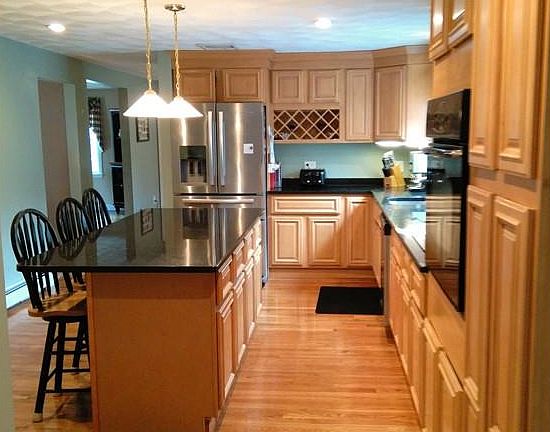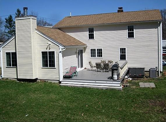 Immaculate 9 room 4 bedroom 2 1/2 bath colonial in West Woburn. This home has been completely remodeled throughout and recently added a 20 x20 1st floor great room with cathedral ceiling, fireplace and slider to large composite deck over looking a large private yard. The custom kitchen offers maple cabinets, granite countertop, large island and built in oven and counter top range. The master suite has plenty of closets and private bath with jetted tub and separate shower.There are hardwood floors on first level, fireplaced living room, a study area and formal dining room and central air. The dining room could also be a 5 th bedroom. The farmers porch and two car garage are added features. This home is in the new Reeves School district and handy to all major routes, shopping and public transportation.
