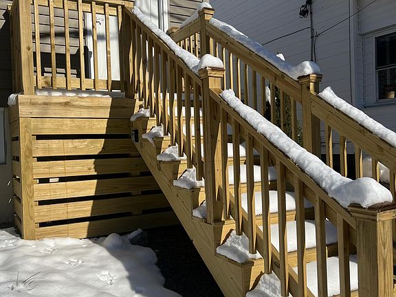Drop everything you're doing and run to this home! This absolutely adorable and completely remodeled house features two large bedrooms, one absolutely stunning bathroom with a washer/dryer hookup, office/play area, a HUGE family room with vaulted ceilings, and the most perfect eat-in kitchen- big enough for large family gatherings! The large eat-in kitchen is fully equipped with new stainless steel appliances, vaulted ceilings, recessed lighting, brand new cabinetry, even a pantry cabinet! The kitchen accesses the perfect sized deck as well. All new siding, brand new windows, brand new hot water heater, etc! Every inch of this home has been carefully planned out and remodeled; a complete turn-key forever home. Pictures don't do her justice, make your appointment today to see this beauty!