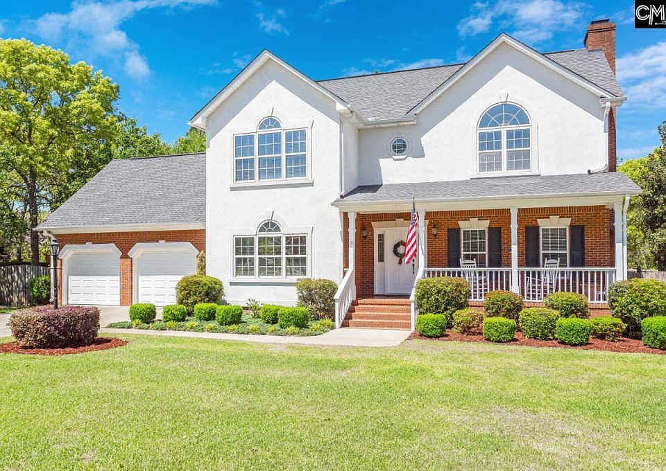 Lovely 2-story traditional on .55-acre quiet cul-de-sac. Plenty of room for outdoor entertaining in the fenced backyard with screen porch and extra-large extended deck. Covered front porch is perfect for rocking and enjoying the afternoon. Banquet size dining room w/hardwood floors. Den has hardwoods, a large wood burning fireplace with gas starter and French doors to screen porch. Kitchen has an island, eating area w/bay windows, microwave and new stove and dishwasher (2018). Large master with cathedral ceiling, palladium window, jetted garden tub, double vanity and separate shower. Second bedroom has cathedral ceiling & palladium windows. Upstairs HVAC unit has been replaced. Outside stucco, LR, kitchen & master bath ceilings were painted 9/2016. The garage has extra area for storage and easily fits 2 cars. Flat, fenced backyard has single gate to left & 2 areas with double gates. Sprinkler system front & back has its own meter. 2-10 home buyers warranty. Upstairs has brand new carpeting and freshly painted guest rooms. Easy access to schools, Ft. Jackson, shopping and downtown Columbia. HOA dues include access to Lake Columbia for fishing, canoeing & kayaking, 3 playgrounds, gazebos and ponds.