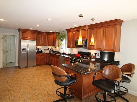 Absolutely beautiful custom colonial set on an acre and half lot at end of cul-de-sac. This is a wonderful home for a large family and entertaining. The first floor features a large custom kitchen with granite counters and stainless steel appliances and dinette area that opens into an over sized family room along with a formal dinning room, formal Livingroom and half bath with laundry. There is also a slider off dinette to a large deck and screen room overlooking a private wooded back yard. The second floor offers a large master bedroom with hardwood floors and a master bath with double sinks and a tiled shower with steam unit. There are 3 additional bedrooms on second floor along with a common bath. Other features include central air, 10' walls in basement with slider to back yard. town water and sewer along with a well for irrigation, and a solar system on rear roof that is owned not rented.