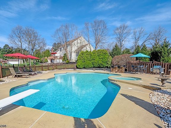 Beautiful remodeled home with pool in prime location of Readington Twp. Spacious and open floor plan. Gorgeous remodeled kitchen with center island and stainless appliances. Finished walkout basement. Large family room with vaulted ceilings, 2 skylights and fireplace with brick surround. Large conservatory with high ceilings. Beautiful master suite with walk-in closet and remodeled bathroom (vaulted ceiling, sky light, double-sink vanity). Great room sizes for the additional guest bedrooms. Remodeled guest bath. All windows were replaced. Finished WALKOUT basement with recreation room & exercise room. Amazing tranquil backyard perfect for entertaining large parties. Large Trex deck comes off the kitchen. Heated pool, raised hot tub and bar area make you feel like you are at a resort. Large level lot.