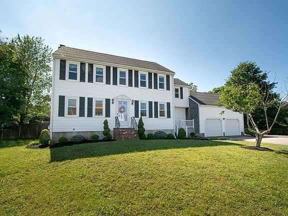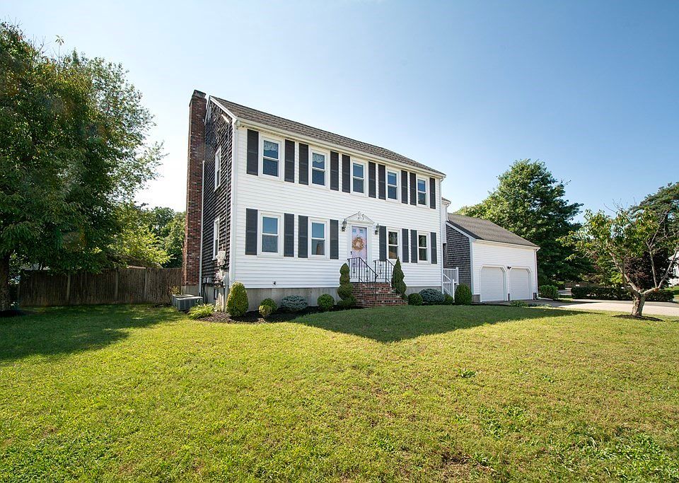 Beautiful colonial featuring 4-bedrooms, 2.5-bathrooms, and a 2-car attached garage. Located on a cul-de-sac in a highly desirable Rockland neighborhood. The home sits on a fantastic 0.67 acre, fenced-in corner lot. Vinyl-sided exterior, 3-season porch, and freshly landscaped lot. Large kitchen off of the mudroom features tile flooring, recessed lighting, and gas cooking. The kitchen leads to a spacious 17x25 living room with recessed lighting, gleaming hardwood floors, and a wood-burning fireplace. The upstairs boasts 4 spacious bedrooms, including one with views of Studleys Pond. The primary bedroom includes cathedral ceilings and a full private bathroom. Gas heat and central air. Unfinished basement with plenty of room for storage or additional living space. Close to all area amenities and highway access.