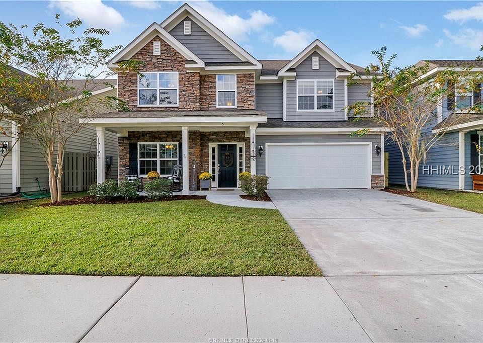 SHELL HALL living at its finest., This 4 bedroom 2.5 bathroom home is set on one of the quietest streets and has a private wooded view. Master Bedroom is on the 1st floor with large master bathroom featuring 2 vanities, separate shower and soaking tub, and private water closet. Gourmet kitchen with double ovens, gas range, staggered cabinets, and large island with counter height seating. Office/Library. Living area leads to a relaxing covered, screened porch. Second floor has 3 guest bedrooms and full guest bathroom surrounding huge loft area. Convenient walk-in attic storage. Walking distance to Bluffton Schools and new HH Christian academy