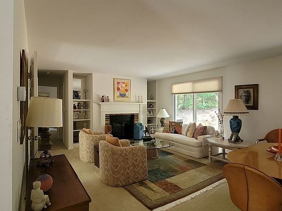 Meticulously maintained very private end unit at Stoneridge Village Condominiums at Mainstone, last home on the right. As soon as you walk in you will feel the openness of the floor plan. Your eyes will sweep from one end of the living room with its wood burning brick fireplace, flanked by custom shelving units, across the dining area and beyond through the sliders to the private deck and yard. The den, can be a second bedroom, is sunny, inviting and also features a full wall of custom shelving. This unit is a rarely available one bedroom plus den with two full bathrooms. The custom redesigned eat-in-kitchen features an abundance of solid wood cabinets, stainless steel appliances, specialty lighting and a built-in workspace with sliders to the private deck and yard. Immaculate throughout including a full basement with oversized storage room. Direct entry garage. Enjoy the pool and nearby tennis courts. Conveniently located w/in 4 miles of the Mass Pike, 5 miles to 128