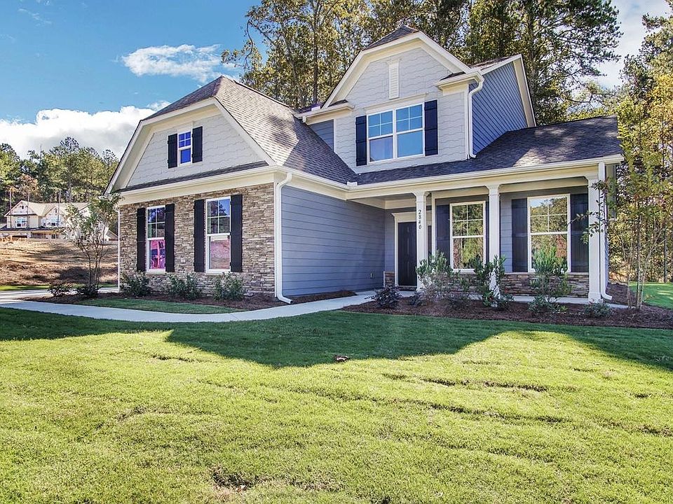 Beautiful 1st floor master floor plan. This home has a an open style concept where the designer kitchen and family room both flow together. Also there is an office ILO dining. This home has a 5 piece luxury master bath. Huge upstairs with extended loft and 3 additional bedrooms. This home sits on a private wooded cul-de-sac lot that is .95 AC. This designer home is a must see!! Great functionality!