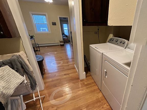 3 bed/1 bath (second floor) Large eat-in-kitchen Separate living room Free use of in-unit laundry machines Hardwood floors Shared backyard Parking for 1 car TANDEM in the shared driveway INCLUDED in the rent