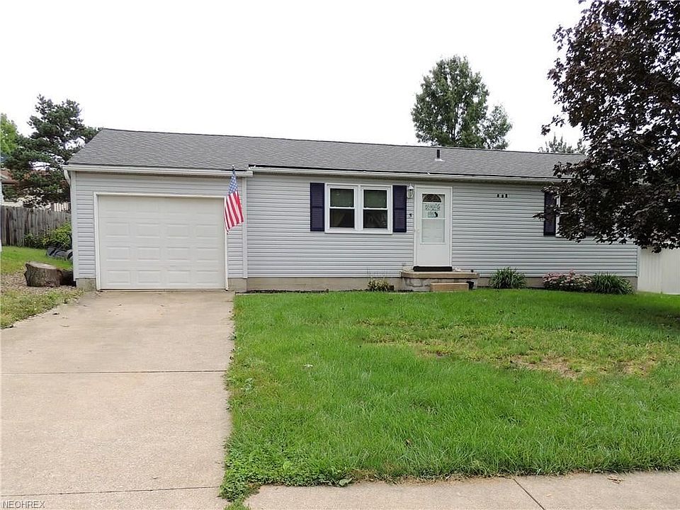 Cozy ranch on a cul-de-sac with a great fenced in backyard. This home features 2 bedrooms on the main level both with newer carpet, a full bath, living room, dining room and kitchen with appliances. The basement is currently being used as a 3rd bedroom/ family room and laundry room. The windows and roof have been recently replaced. Why rent when you could own!