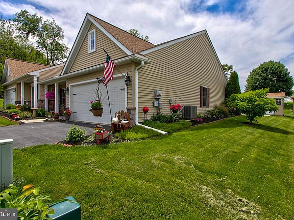 Nestled near the peaceful backdrop of an Amish farm, this well-maintained home offers both charm and modern updates. The beautifully mature landscaping creates an inviting curb appeal, while a new roof installed in 2020—complete with a transferable warranty—adds long-term peace of mind. Step inside to discover fresh paint throughout, newer carpet, and updated vinyl flooring in the kitchen and hall bath. The open-concept living and dining areas boast soaring cathedral ceilings, enhancing the home’s spacious and airy feel. Enjoy outdoor living on the rear patio, shaded by an automatic awning for comfort in any weather. A new water heater was installed in 2023, and central A/C ensures year-round comfort. All appliances stay, making this move-in ready home a standout value.