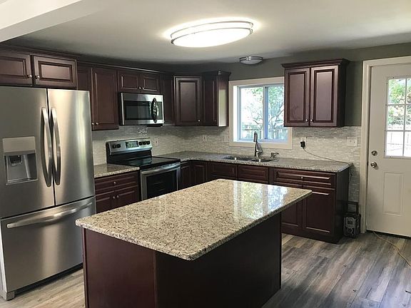 Charming, completely renovated 4 bedrooms with 1 1/2 baths. Beautiful flooring, tile & wall to wall carpets. Cherry Maple cabinets w/granite counter tops with center island perfect for entertaining, all new stainless steal appliances, 1st floor offers 2 bedrooms, full replacement bathroom, formal dining & living room-closet for utilities & laundry hook ups. 2nd level 2 bedrooms, gathering room, 1/2 bath. Enjoy wrap around porch. Large garage & driveway. Great yard-fenced in. New Energy Efficient Furnance, New Electric, New Roof, New Windows, Home is Insulted, New Vinyl Siding, New Fence, All New Doors, All New SheetRock, Many new items in home, perfect for you!