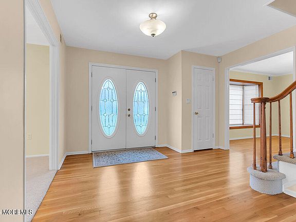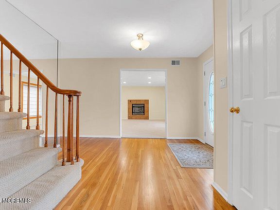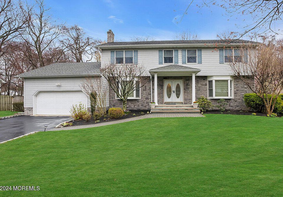 Move right into this 5 Bd/2.5 Bath meticulously kept center hall colonial on .34 acres. The layout has an easy flow for entertaining, going from the Living Room to the Den into the 16 x 17 three season room with vaulted ceiling, overlooking the private fenced in yard backing up to Green Acres. The eat in kitchen boasts a large center island, stainless steel appliances, maple cabinets & Corian countertops. From the kitchen step out to the 16 x 32 Trek deck & enjoy barbecuing on the natural gas grill. The LR & DR have beautiful sunny bay windows & hardwood floors through the house except the den. Cozy up to the gas fireplace, which is zero clearance & blows heat. One bedroom on the main floor & 4 large bedrooms on the second floor. Master bedroom has 2 sets of closets, one being a walk in. Newly updated (2023) Master Bath with duel vanities, bidet toilet & glass enclosed shower. Partial finished basement with loads of storage closets &French drains. So many extras include security system, EV Charging Station in the garage, Smart Electric Meter, Nest Thermostats, automatic garage door openers, 2 zoned heat & air, whole house Kohler generator with wifi (2021), whole house water filter, Anderson windows, Bluestone front covered porch & paver walkway. Loads of upgrades such as skylight (2021), furnace (2020), AC (2023), dishwasher (2020), stovetop ( 2017), Cafe wall oven (2022) Refrigerator (2017). Minutes to Rt 18 & GSP, houses of worship & beaches. Enjoy all that the Jersey Shore has to offer but enjoy it in your new "Little bit of Heaven" home.