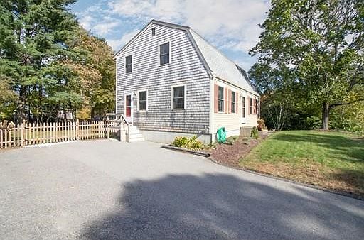 Welcome Home to this well maintained three bedroom West Plymouth Gambrel Cape. Just a short walk to 21 acre Kings Pond and minutes to golf, shopping, restaurants, Route 3 and historic downtown Plymouth. This home has had many recent renovations including fresh exterior paint and newly fenced backyard. The rear yard is level and private, has a fire pit, shed and deck with seating. Inside, you will love the newly combined family/living room w/ fresh paint, new carpet and fireplace and slider out to the backyard deck. Eat-in kitchen with new laminate floors, new butcher block countertops and separate dining room with new laminate floors. A half bath completes the 1st floor. Upstairs there are three bedrooms, full bath w/ large tub with new enclosure plus eave storage. The lower level has a heated room that would make a great office or hobby room. You will also enjoy newer Anderson windows, exterior doors, Azek trim and more. Everything is ready for you to move right in. Come take a peek!