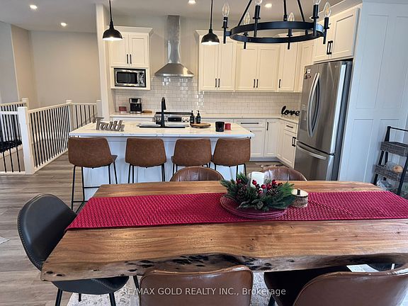 Welcome to Mill Pond Estates in Tillsonburg, where modern elegance meets tranquil living. This striking 2,808 sqft residence offers a perfect blend of style and comfort, backing onto a serene pond that enhances its peaceful ambiance. The exterior showcases a refined aesthetic with white stucco, black accents, wooden beam details, and a double-car garage with a separate entrance. Inside, the grand foyer with tray ceilings opens to a bright, open-concept layout adorned with contemporary finishes and thoughtful design elements throughout. The living room features a stylish corner gas fireplace, seamlessly connecting to a spacious dining area ideal for entertaining, and a covered porch that overlooks the tranquil pond. The custom-built wood kitchen is a true showpiece, offering ample cabinetry, a striking backsplash, and granite countertops. The main floor includes a primary suite with a walk-in closet and a 3-pieceensuite finished in cultured marble, along with an additional bedroom, a 4-piece bathroom, a laundry closet, and a mudroom with generous storage. The fully finished lower level extends the living space with a large recreation room featuring patio doors that open to a covered concrete terrace, also overlooking the pond. Two additional bedrooms, a 4-piece bathroom, and a spacious utility/storage area complete the lower level. This move-in ready home embodies modern sophistication and is awaiting your personal touch.