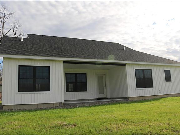 Here is your opportunity to own virtually brand new construction without the wait! This stunning modern architecture ranch was just completed in November 2022. Due to a change in the owner's plans, they will be relocating, offering a new buyer the chance to purchase a new home! No detail was spared on this unique home that stands out from any other on the street. A true entry way opens up into an expansive living room with vaulted ceilings. The slate stone with electric fireplace runs up the length of the wall to emphasize how tall the ceilings really are. The open concept living, dining, and kitchen is amazing for entertaining and spending time with the family. The kitchen is complete with Quartz countertops and high end appliances. One end of the home houses the 2 spare bedrooms and one full bathroom while the primary bedroom sits on the other side of the home, creating a peaceful separation between guests or children. The master boasts an eye catching bathroom complete with a double vanity and stunning walk in tile shower. This house has every amenity that is desirable to any buyer. The one level design is perfect for buyers of all ages and accessible for handicap. The radiant floors creates the most amazing warmth in the winter months. In the warmer months, you will appreciate the recessed concrete patio overlooking the nicely maintained landscape. A home this unique doesn't come up often. Don't miss the chance to make this house your home.