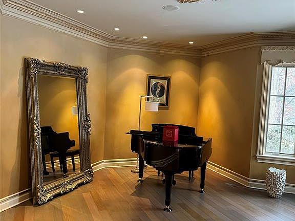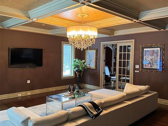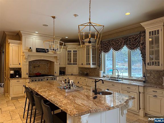 12,000 sq ft of luxurious living set on a private cul-de-sac with only two homes, this exquisite custom design architectural masterpiece features 6 bedrooms, 7 full bathrooms, and two half baths. The finest quality craftsmanship, amenities, attention to detail throughout. Vaulted coffered ceilings, antique faux painting with gold leaf, custom woodwork and elegant moldings. Grand double story foyer, Elegant dining room, gourmet kitchen with tumbled marble heated floors, onyx backsplash and huge eating area. The second floor boasts primary bedroom with a sitting area, balcony, fireplace, to huge walk-in closets his and hers bathrooms. Three more bedrooms with private en suite baths and walk in closets. Extended living room space with 9 foot ceilings in basement with wine cellar, Tennessee movie theater billard room. Resort like backyard with waterfall, lighted Gunite pool with Turkish marble stone patio. Top rated schools, great commute to New York City 2.7 miles to rail