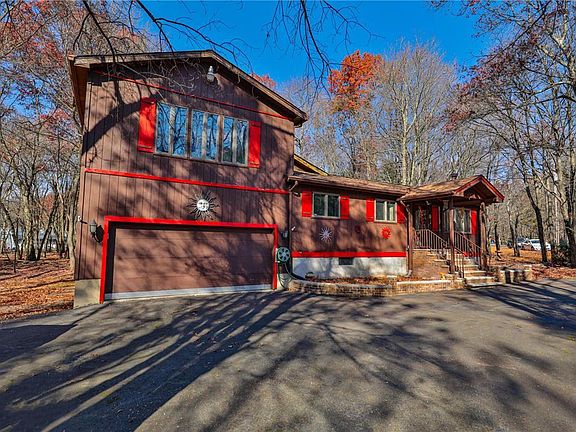 This sale includes TWO PARCELS! You can live in the house and potentially build on the other lot, or enjoy just over an acre of land with a location convenient to several ski resorts, Pocono Raceway, the outlets and more! This desirable gated community offers 2 outdoor pools, 5 lakes great for fishing, 24 hour security, a clubhouse, tennis and basketball courts, playground, and several beaches. This beautiful well cared for home was originally a ranch home but over time they added on a four seasons multi purpose room off the back plus the two car garage and the second floor above the garage. The roof is 1 yr old,there is central AC, newer wood floors in kitchen and the appliances are less than a year old. You can sit at the table in the updated kitchen and watch the deer out the window. The living room area is spacious and features a wood stove for supplemental heat, and the bathroom is updated. Gorgeous cathedral ceilings accent an oversized owner's suite on the second floor, in addition to a full bathroom and walk in closet. The circular driveway on this corner wooded lot provides added convenience, and the outdoor gazebo is perfect for entertaining and enjoying the quiet wooded lot. This home has so much to offer and is move in ready.