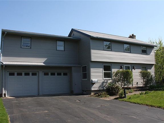 This classic 3-4 bedroom colonial in a nice neighborhood with popular West Irondequoit Schools has tons of storage. The large eat-in kitchen has lots of oak cabinets, a large chopping block island and enough counter space for all your needs. All appliances (stove, refrigerator, washer and dryer) included. The master bedroom is very large with three double closets (one with built-in dressers) and well as a dressing room/walk-in closet. The family room has a gas fireplace with remote! The office area could easily be made into a fourth bedroom. A finished bonus room in the basement has lots of potential uses. Call today for a very easy showing! The address for tax records is 5 Karlan Drive. The house faces Veronica Drive and has the house number 72 on it.