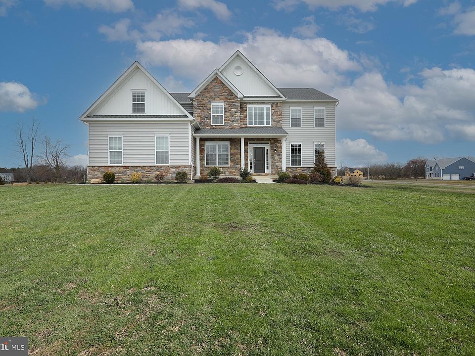 Don't miss this stunning formal upgraded sample model home in the "Estates at Oldman's Creek" Just 2 years young- why wait for a new build when you can close on this home fast! This beautiful home has great curb appeal with a corner lot and impressive professional landscaping with a beautiful, accented exterior that features stunning stone and Batton & board vertical siding accents, and an open front porch with columns. The side entry 2 car garage adds to the curb appeal, this features additional an storage area. Enter into the 2-story foyer, with an upgraded oak staircase with upgraded wrought iron railings with oak box rails. The hallway features a home office with 2 panel doors for privacy, a powder room with a vanity and upgraded granite top, and a stairway to the full poured concrete basement with a 2-zoned HVAC system, a high efficiency HWH, prgramable thermostats and a 200-amp electric service, There are upgraded hardwood floors throughout the living, dining rooms, office, family room, kitchen & breakfast rooms. The formal living and dining rooms feature crown moldings, and a custom tall chair rail wainscotting graces the dining room for a beautiful accented formal yet country style elegance. A large Gourmet kitchen with all stainless-steel appliances, granite counter tops, lots of 42" high cabinetry with a tiled backsplash, island breakfast bar that has room for barstooks, a large pantry, and a separate breakfast area with a sliding door to steps and a large patio. The huge back yard with a total of 1.4 acres on the corner that has so much potential & room to grow. An avid gardener and a large, shed accent the back yard. The large family room off of the kitchen features a soaring cathedral ceiling, and lots of windows for natural light. A gas fireplace with a wood mantel adds warmth to this stunning spacious room. A first-floor laundry also features a high efficiency washer & dryer and a laundry sink, with access to the side entry 2 car garage. The upstairs is spectacular- starting with a stunning primary suite, the amenities include the straight edged tray ceiling with accent crown molding, a primary private sitting room and a large walk-in closet. The primary bathroom features upgraded tiled flooring and walls in the walk-in shower with frameless glass shower doors and tiled surrounding the garden soaking tub. The double sink vanity with lots of cabinetry for extra space features an upgraded quartz countertop. There are 3 additional large bedrooms with lots of closet space. A full hall bathroom also features upgraded tiled flooring and tub/shower walls. A double vanity sinks also with a quartz countertop. There is a full attic which holds the 2nd HVAC system. So much house for the money, and only 2 years young!!!Show & sell!!!
