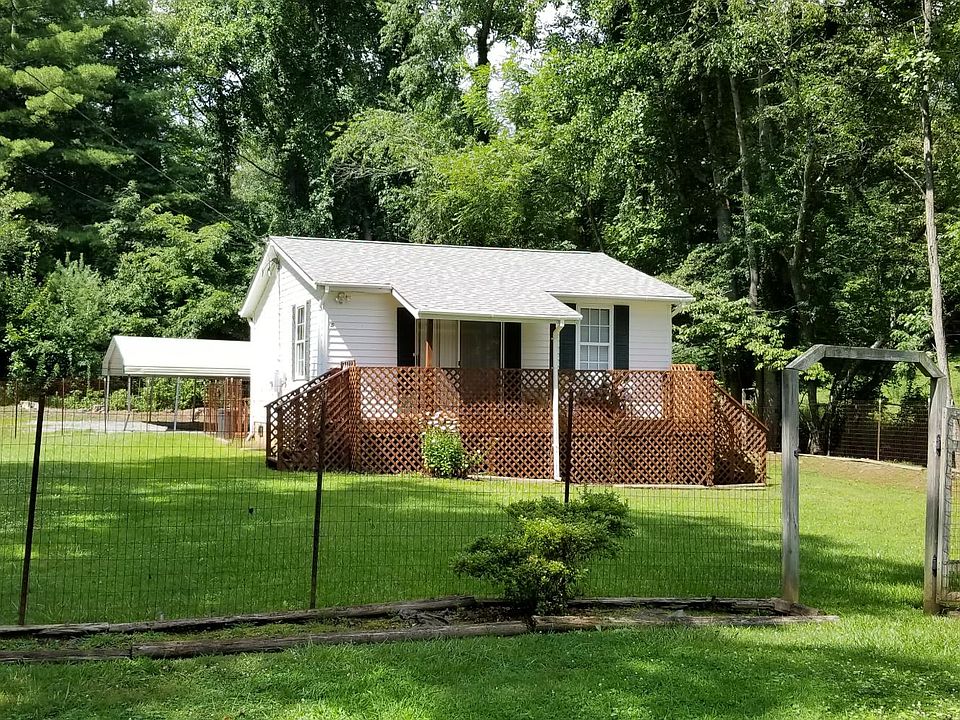 Washer, dryer, storage building, carport, deck front and back & beside creek. No emails please! Renter pays lights, water & propane. No pets