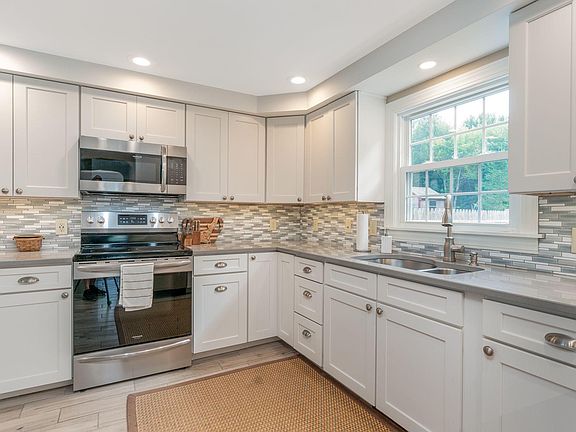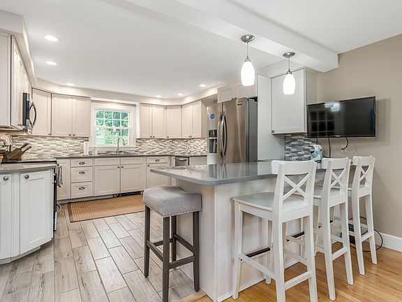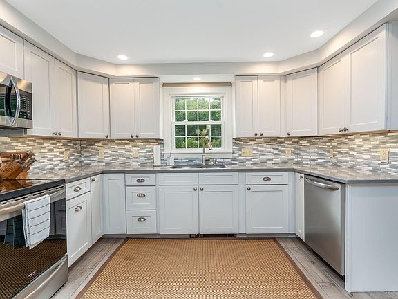 This 3 bedroom, 2.5 bath meticulously maintained home is ready to be yours. Enter through the formal front door or through the covered side porch connected to the garage. Retreat from weather or with an armload of groceries through a charming wood paneled mud room that opens to the bright and recently updated kitchen. Highlighted by a peninsula with counter seating, quartz countertops, tile backsplash and stainless steel appliances, the kitchen flows to a formal dining room. A spacious living room with cozy gas fireplace opens through glass doors to the private back deck with a separate fire pit area, perfect for an evening at home with friends. Upstairs, the hallway features a built-in bookshelf with plenty of room for display and storage. The primary ensuite includes a double vanity, a jetted tub and pebble tiled shower. Two additional bedrooms and a hallway bath complete the second level. The partially finished basement with washer and dryer offer opportunity for expansion and storage. Enjoy the tranquility of this secluded neighborhood not far from the exciting hustle and bustle of downtown Freeport shops, restaurants and entertainment.