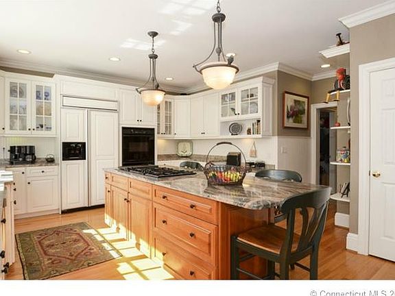 A true colonial masterpiece in the heart of New England, welcome home to 5 Kew Gardens in Farmington, CT! You will not be disappointed to hear that this over 5000 sqft, 5 bed, 6 bath home nestles in the Devonwood neighborhood, it is a staple in town with easy access to highways, Uconn Medical, We-Ha Center, and Winding Trails. Privacy is a constant theme with this home, the driveway and entryway feel tucked away from other homes, accompanied by professional landscaping and a large deck space. Entering the home, you are greeted to a foyer with a classic chandelier splitting the formal dining/living rooms, both hold fireplaces and beautiful crown molding. Just a bit further you will find the open concept main living area. The kitchen is large and expansive with top of the line appliances and plenty of room for dining. Further, the family room features coffered ceilings and a stone fireplace. Additional rooms include a sun room, office and a laundry/bath located off of the 3 car garage. Heading upstairs, the master suite includes another fireplace, a double vanity bath and a huge walk in closet. There are 3 additional bedrooms on the 2nd floor, 2 of which share a jack and jill bath, while the other has a full bath of its own. Above the garage, there is an additional bedroom/loft and full bath, easily could be used as an Au Pair/in-law suite. Finally, there is over 1500 sqft of finished basement for just about anything. There is too much value here, under $790k, see it quickly!