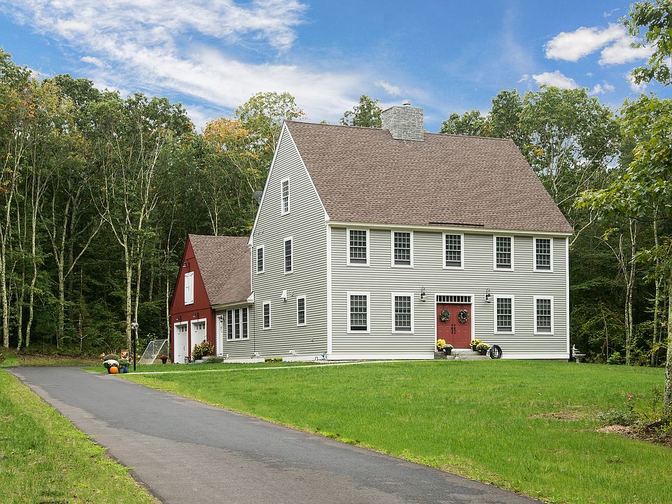 This Turn-of-the-century nostalgic colonial blends modern convenience and traditional style. Bright open floor plan with open beams in the dining room, beautiful center chimney for the fireplace in the living room for those chilly New England nights. Located on a cul-de-sac of similar antique replica homes full of character and early American charm.