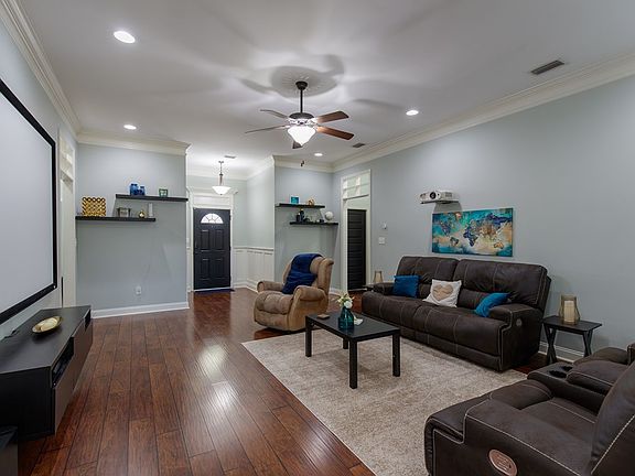 This is what you have been searching for! 4 bed/2bath home on 0.5 acres with a COMMUNITY POOL in the highly sought after Boyette Farms neighborhood! Still LIKE NEW, and only 7 minutes to MOODY AFB! Custom projector with screen in the great room makes for the ultimate family movie nights or game day headquarters! Hardwood floors throughout the home and in ALL bedrooms! Beautiful kitchen with stainless steel appliances, custom cabinets, eat-in island, recessed lighting, and open dining room with judges panels! Master suite features intricate tray ceiling, not two - but THREE walk-in closets, double vanities, rain head shower, garden tub and private water closet! Home has a screened in back porch with ceiling fan to beat the heat! Home also features a 3 car garage! You won't find another one like this!