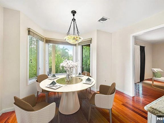 5 Kings Ct. Fort Lee, New Jersey | This beautifully appointed unit is located within a gated community with townhomes. The first floor features a living room with a wood-burning fireplace, a high-end kitchen with custom cabinetry, granite countertops, an island with breakfast seating, a dining area, and a deck. The second floor includes a spacious master bedroom with a walk-in closet, a master bathroom, and an additional bedroom with its own en-suite bathroom. The fourth floor offers two additional bedrooms, each with uniquely designed bathrooms and individual powder rooms for each bedroom. The unit includes an attached garage with space for two cars and a driveway that can accommodate two more. The community is secured by a 24-hour staffed gatehouse and includes an outdoor swimming pool. Situated in the beautiful and sought-after Kensington Park gated community. The current owner has fully paid off the special assessment fee of $33,600 for the installation of two new balconies.