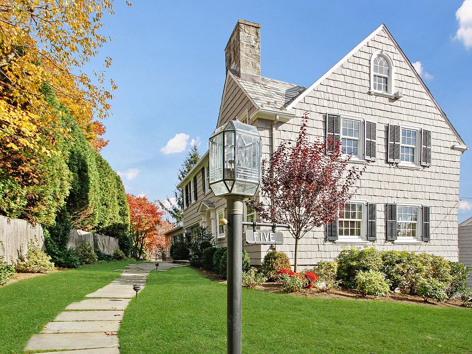 Picture perfect, light and bright with lovely classic details. Entry foyer with powder room, two coat closets, is flanked by a living room with fireplace and an elegant formal dining room. Super-sized kitchen, with back staircase, has Carrara marble, a contiguous eating area leads to a patio. The backyard is surrounded by evergreens. A cozy porch and second patio is off the kitchen and a family room completes the main level. Upstairs: large master suite, with a master bath and walk-in closet and a separate dressing room with two closets. Three bedrooms; two share hall bath, Jacuzzi tub, one with full back hall bath. Stairs to attic. Large immaculate basement to attached garage. Features: slate roof, wood floors, moldings, built-ins, large closets, CAC, Marvin windows, new appliances, Individual HVAC in kitchen, great storage, unique private setting. 2016 painted in/out, newly landscaped-2015. 10 minute walk to Hartsdale and train. 6 minute walk to school, bus to middle and high school.