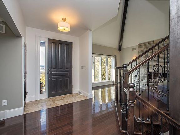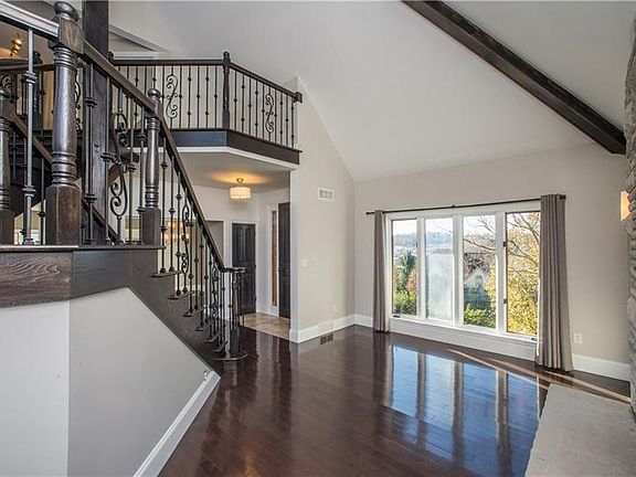 This beautiful contemporary home is situated in Kingswood, an upscale South Strabane neighborhood. This home features 3 bedrooms, 2 full and 2 half baths; beautiful hardwood floors and tile throughout the main living spaces, a floor to ceiling gas stone fireplace in the living room, and a formal dining room with built-ins, perfect for serving a large meal during holiday gatherings. The kitchen, with high end stainless appliances and ample cabinetry, also features a window seat between the pantry cupboards where you can enjoy a cup of tea while the laundry is drying, just steps away, in the first floor laundry room. An open staircase with ornate wrought iron, between the living room and family room, leads upstairs to the Master bedroom that boasts an en-suite with a modern tub, a walk-in shower with multiple jets. The large finished basement offers more living space with a possible 4th bedroom, a stone accent wall and modern slate flooring in the half bath. The professionally landscaped yard has a great stone patio and a side deck for entertaining. The retaining wall at the garage has stairs leading to the rear patio and the yard. Awesome views can be enjoyed from almost every window! The very neutral color scheme of white, gray and black makes this home absolutely move in ready.