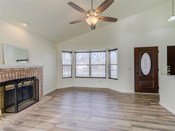 Come in out of the cold to this charming gem and imagine a cozy night at the woodburning fireplace. The open floor plan is illuminated by the newly installed luxury vinyl plank flooring, vaulted ceiling, and bay windows. Enjoy the newly poured patio just off the breakfast room, with recently installed privacy fence. All new stainless-steel appliances in the kitchen. Both baths located on the main floor have been refreshed. New carpet in both bedrooms and freshly painted walls throughout give the feel of a new home. Expansive finished area in the lower level makes for a great entertaining space or family room. Other updates include hot water heater, interior and exterior doors, baseboards, and light fixtures. The garage has a gas wall heater, shelves, and extra storage space. Located on a quiet cul-de-sac and just minutes to schools, shopping and restaurants, with easy access to major highways.