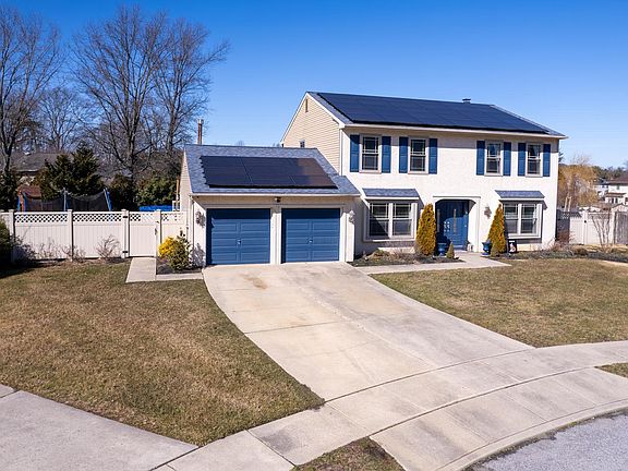 Who wants to own a power generating plant on your roof? Nestled in a quiet cul-de - sac sits this stunning, elegant home. Enter through stately crafted double doors into a majestic foyer with a cathedral ceiling and an exposed staircase. This foyer features a perfectly placed coat rack and bench to keep all of the important items conveniently available for arriving and departing each day. Step to the right and enter through French double doors into a timeless formal dining room to celebrate holidays and memorable family events. If you don't want a dining room, you can use this room as a second Livingroom/family room. Adjacent to this room is an extraordinary find, a culinary haven. Designed for a chef, this kitchen features a 6 burner Wolf gas range with a pot filler and a distinctive industrial stainless hood. Also, there is an oversized pantry for all of your storage needs. Entertaining is effortless with two mini refrigerators, one for wine and the other for drinks. Generous amounts of counter tops and barstools allow guests to socialize with the hosts. When you are not entertaining, enjoy your family dinners at the table because this kitchen is that spacious. The kitchen truly marries sophistication and warmth. Completing the first floor is an enormous laundry room, half bath and family room. Cozy up on a cold winter night by the family room fireplace. In the summer, you can step from the family room onto your hardscaped patio (60ft x 15ft) in a fully fenced yard. There you will enjoy BBQs and pool parties in the above ground pool. Ascend the stairs to the spacious four bedrooms and two full baths. Awaiting you is your private retreat. Glide through double doors into the enchanting primary suite. This serene room provides two walk- in closets and an en -suite spa bath. Finishing the abundant features of this home is the storage we all crave. A two-car garage with attic, accessible to the house, means no snow removal and no wet groceries. The storage doesn’t stop there! A second attic is located upstairs. Peace of mind is yours with a newer roof (6 yrs.). Solar panels are fully owned-not rented and generate over $400 a month in SRECs. From a desirable neighborhood to timeless sophistication, this home truly embodies all of the elements of a perfect home.