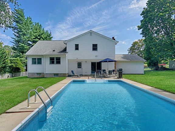 Offered for the first time~Very nicely maintained brick front home with pride of ownership throughout sitting on over 1/2 acre fenced in lot with in-ground pool in Beacon Hill Estates. Double front door leads to large foyer with stone walls.Step up into large picture window living-room overlooking dining-room and kitchen; perfect for family and friend interaction. Maple cabinet kitchen with stainless appliance package recessed lights and granite counters .Cozy wood fireplace family room with sliding glass door to pool back yard. Five spacious bedrooms. Master bedroom with master bath. Hardwood floors underneath carpets on 2nd and 3rd floor. Clean large unfinished basement. Very close to ferry, train and GSP for the commuter.