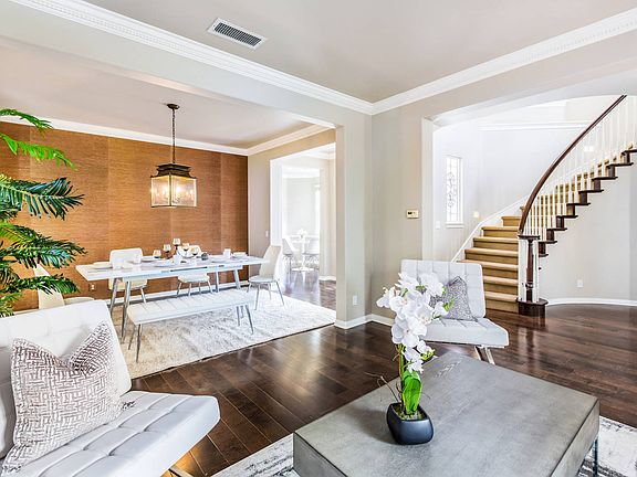 Welcome Home! Ideally located in the heart of Irvine's premier guard-gated community of Northpark. This tastefully upgraded sunny Classic California home has a bright and expansive elevation and covered Port Cochere leading to your private motor court with a three-car garage. This premium lot is located on a double Cul-De-Sac. Arrive into your Foyer with a sweeping curved staircase with widows galore, hardwood floors, crown moldings, leaded glass, and french doors. The open Living Room and Formal Dining Room enjoy California year-round living with French doors to the side patio with a fountain that's in addition to the grassy backyard!