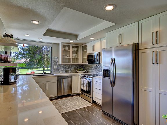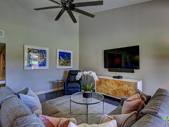 $20,000 PRICE REDUCTION. SELLER WANTS IT SOLD. This one is the WOW FACTOR. Barcelona plan with all the fixings. Kitchen has been totally remodeled. Beautiful tile flooring with plush carpet in second bedroom. Views from the kitchen and living room are fantastic with golf course and mountain views. Both bathrooms have been updated with new vanities and flooring. The walls in the master and 2nd bedroom have designer wall paper. The Den/Office has a wonderful reading room with natural light beaming through the ceiling. Built in office desk for when work calls. Sit out on your patio and enjoy the sunsets with a nice glass of your refreshment of choice. All fans are on remote including the awning in the patio. Garage has plenty of storage. You will be glad you dropped by. Furnishings are included in the sale minus area rugs and 2 pieces of art work.