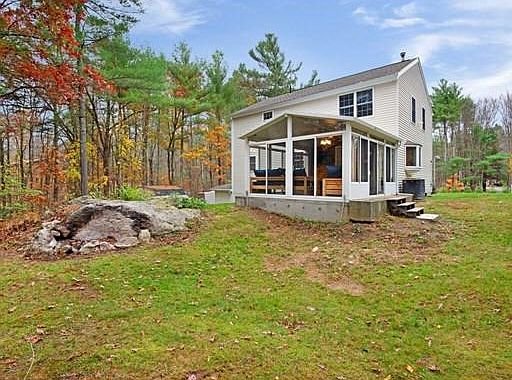 Buyer backed out. Welcome home to this beautiful center entrance colonial on a beautiful wooded lot. Open floor living at its best with an amazing freshly painted bright white chef's kitchen, granite counters, new butcher block kitchen island, Double ovens and stainless appliances. First floor is all hardwoods. Dining room with chair rail and pellet stove and nice sized family room. Spacious 3 season sunroom. Great size main bedroom with nice sized walk in closet and walk up attic access. Two additional good sized bedrooms with nice sized closets. Second floor laundry in upstairs bathroom. Central air. 2 car garage under with additional workshop space. Tons of additional storage space in the unfinished basement and storage shed. Private 2 acre wooded corner lot, Private septic and well water with passing title V. Come and see all that this beautiful home has to offer!