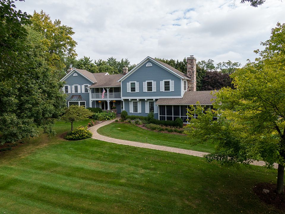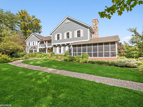Rustic romance abounds in this utterly magical modern farmhouse at 5 Lake Adalyn! This spectacular, sprawling home-the original farmhouse and iconic "first home" in the highly desirable "The Glen of South Barrington" enclave -is like stepping into a storybook, and now with 4+ bedrooms, 3.1 baths, it's ready for new owners to write the next chapter in its epic saga. Some of the home's vintage charm remains intact, including its cellar that marks the footprint of the original structure (perfect for wine storage!), however, additions and improvements through the years have transformed it for effortless modern living. Situated on a secluded, rambling lot surrounded by mature trees and immaculately landscaped grounds, a sweet garden arch welcomes you up the charming brick paver front walkway and into the home's expansive main level. Off one side of the foyer is the formal living room with brick fireplace, wood beam ceiling, and built-in bookcases, and on the other side, the huge formal dining room and great room beckon, with a grand farmhouse staircase in between the rooms lending an undeniable rustic charm. Atrium doors from the dining room open to the front porch, ideal for indoor/outdoor entertaining, and in the "hunt room," or great room, the stone fireplace, wood beam ceilings, and numerous windows invite the outdoors in the coziest way imaginable! An atrium door from the great room leads to the massive, newly refinished backyard deck, the most perfect setting to bask in the vibrant natural surroundings while dining al fresco. Back inside, the expansive chef's kitchen is steeped in the rich wood details found throughout the home but with modern amenities at every turn, from a Wolf range, Best range hood Sub Zero refrigerator, Wolf double oven, and seemingly endless cabinet storage, to the heated floors, reverse osmosis system, and massive center island with wraparound breakfast bar seating. Elsewhere on the main level is a large half bath, office with half vaulted wood beamed ceiling, skylights, custom-built desk and fireplace, and simply breathtaking three-seasons sunroom with vaulted roof and floor-to-ceiling windows offering picturesque lake views. On the second floor, the original primary bedroom, which features an ensuite bathroom and atrium doors that open to a balcony overlooking the front lawn, has been expanded to include a second, even larger suite-a private oasis with soaring vaulted ceilings, fireplace, and ensuite with double vanities, his-and-hers custom closets, deep soaking tub, and separate shower. Two more large bedrooms (one outfitted with a California closet), a third full bath, and a dedicated laundry room are just around the corner, AND, there's a hidden room off the tandem bedroom ideal for a hobby room or storage, plus another bonus space above the three-car garage (with electric charging station and new epoxy floor). This area has two extra rooms with zoned heating, making it easily used as guest rooms, flex workspace, home theater, gaming suite, music studio, and playroom - the possibilities are endless. Hop in your electric golf cart (included with the home) to zip around this fabled neighborhood's private beach and lakes. Please see Feature Sheet for list of special features, updates and upgrades.