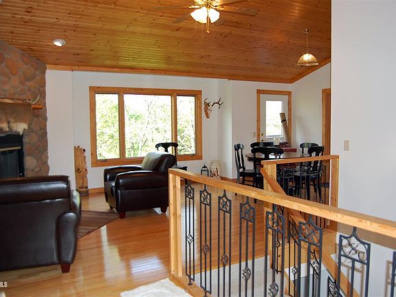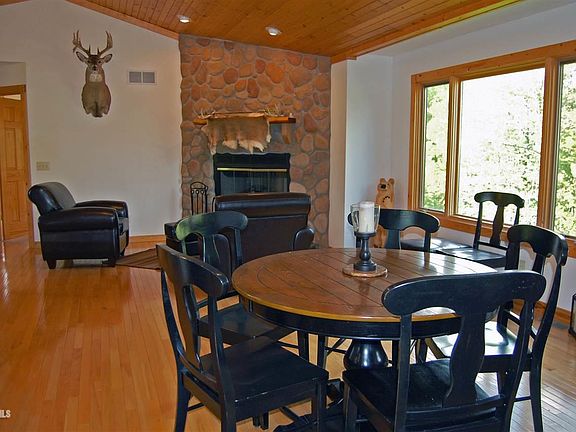 Beautiful, very clean, like new, modern but rustic log home. Surrounded by trees; pines, birch, fir and many more. The trail system is right outside your door and a short distance to the lake and marina. Exceptional Panoramic views. Vaulted wood clad ceilings. A great place for family and friends to gather because each bedroom has its own private bathroom and there is also a half bath on the main level. In addition, there is an outdoor deck with exceptional views and a screened in porch. A very warm and inviting home that is great for entertaining. Sale subject to GTA document transfer fee.