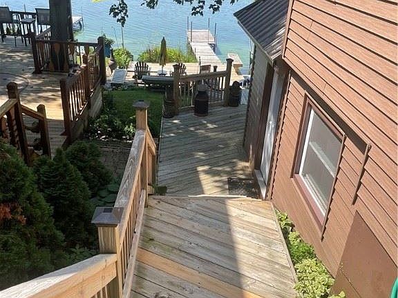 Sandy Pond year round waterfront quality built and maintained home, featuring red oak hardwood floors with ceramic radiant heat in kitchen, granite countertops, Kraft Made kitchen cabinets, inside and out built in surround sound stereo system, docks and boat hoist. Oversized 3 car garage with second floor. Relax and enjoy the sunset from your custom built tiki bar. Walk to Sandy Island Beach State Park and marinas, and restaurants.